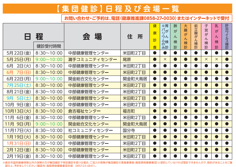 - 倉吉市国保以外の医療保険に加入の方は受診できません。