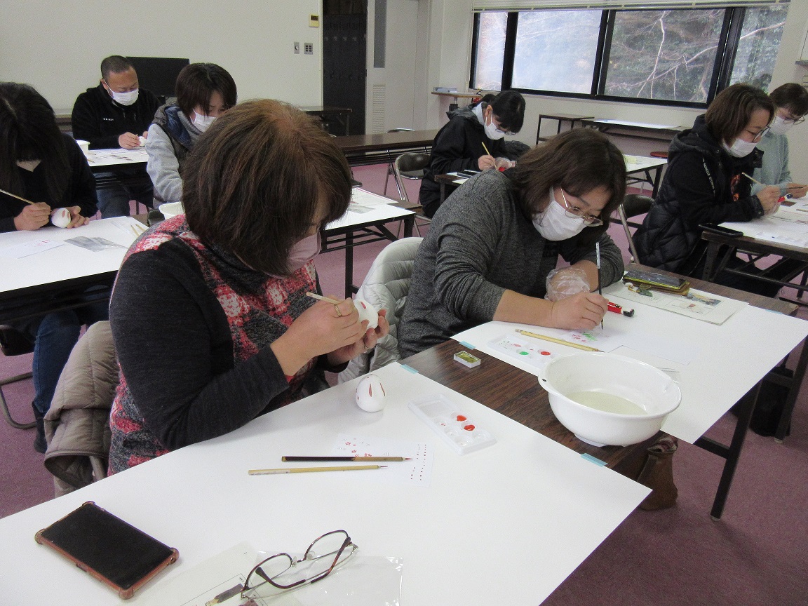 「はーこさん」と呼ばれ親しまれている郷土玩具のルーツや作り方を学び、それぞれが絵付けに挑戦します。翌年の干支「卯」の張り子を選ばれた方もあり、丁寧に筆を運びながら、個性あふれる楽しい作品が仕上がりました。(令和4年12月17日開催)