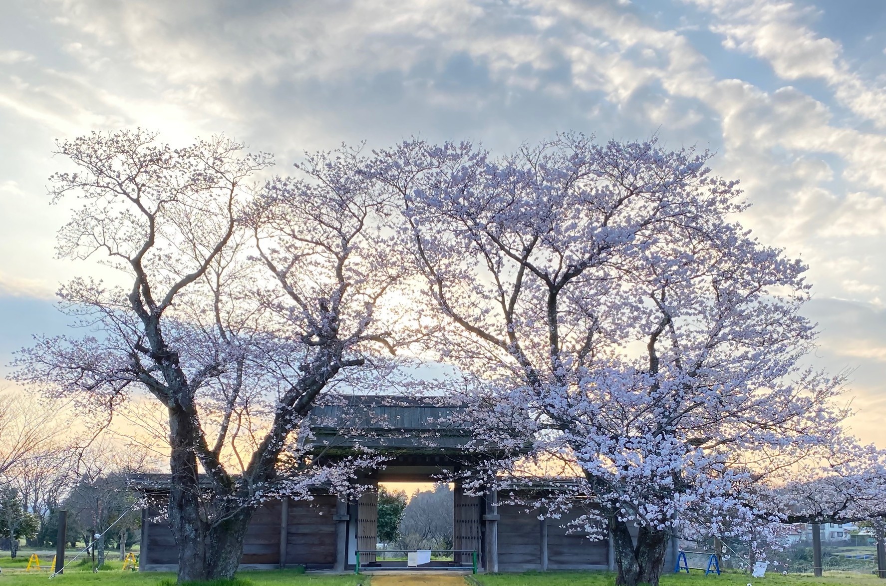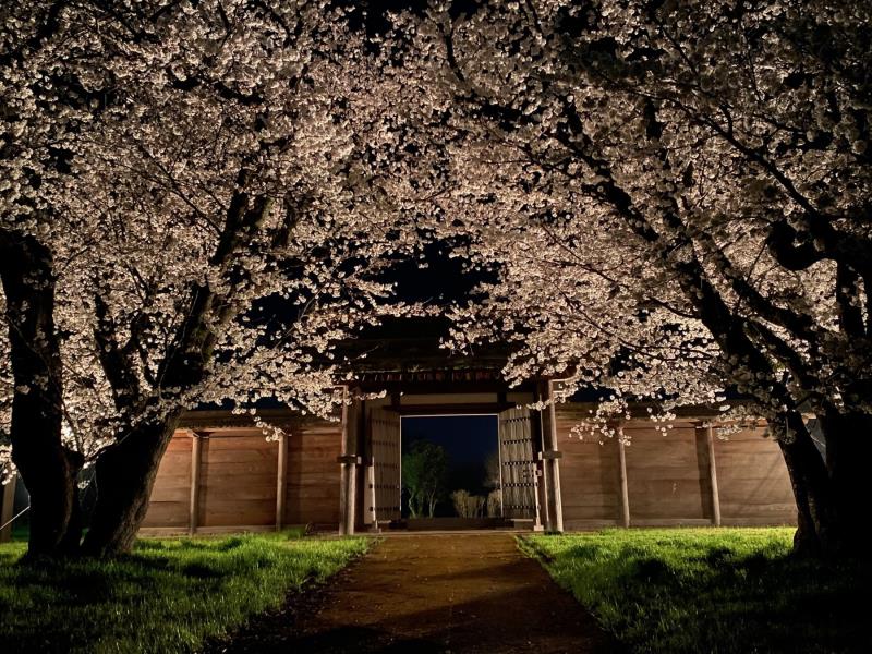 法華寺畑遺跡 西門のライトアップ始まりました